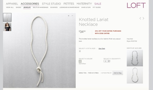 For less than 50 dollars, you too can own this fashionable “Lariat Necklace” from Ann Taylor Loft.
