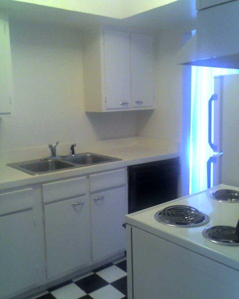 And around the corner we have the kitchen, with updated tile and