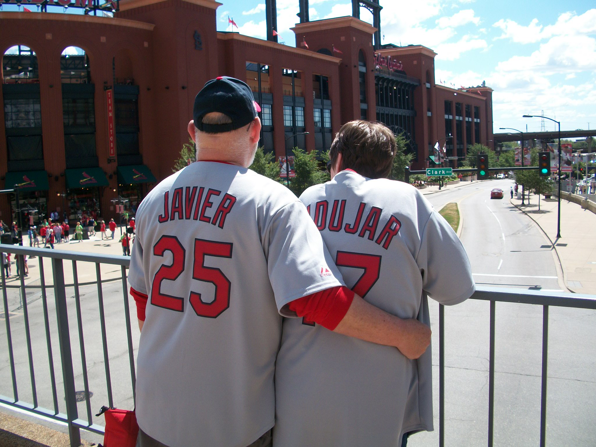 you cannot tell me that this is not a picture of some of baseball's greatest fans. Here, my parents sport their custom-made jerseys of Cards greats Julian Javier and Joaquin Andujar.